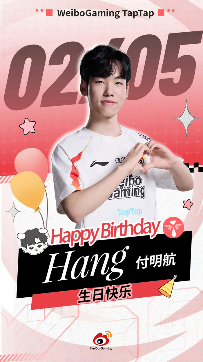 明天是明天盟分WBG TapTap好汉同盟分部辅助选手@WBG_Hang 的生日
